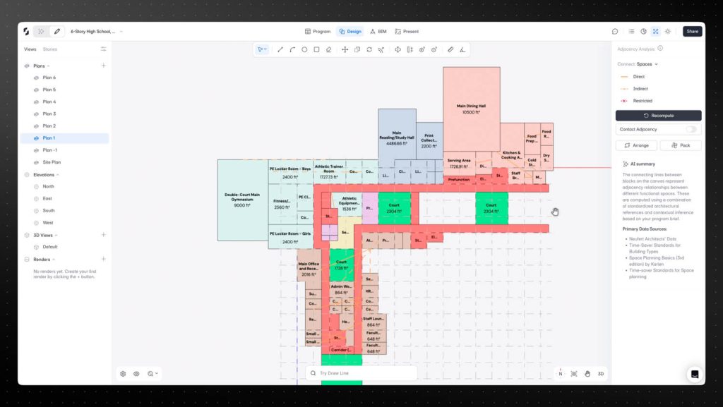 With Snaptrude’s ‘AI stack’ users can simply describe a building type, the site, and the intended use, while the software automatically generates a layout with the right spaces, providing an ‘intelligent starting point’ for manual design.