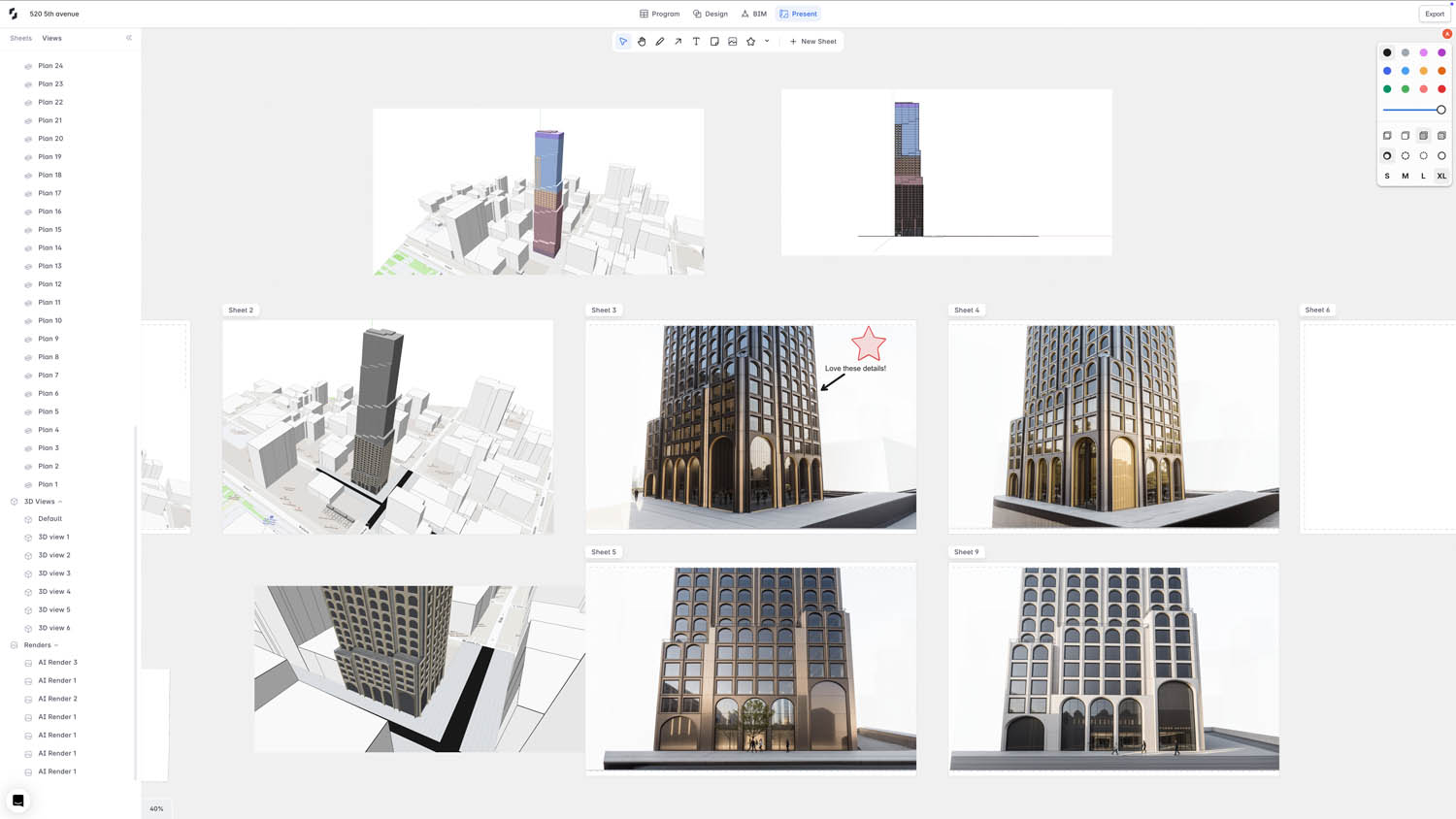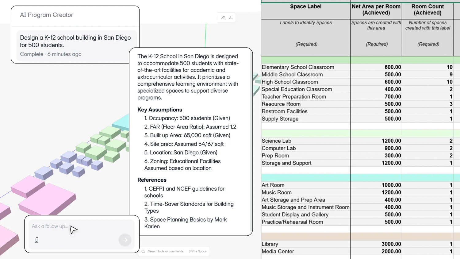 “At the moment, AI is being used as a co-pilot to generate or refine programs with structured data but this will expand. We are prototyping AI automated adjacency creation, blocking and stacking based on physics models, inspired by AlphaFold. Users can also delegate tasks to AI, much like Gmail’s autocomplete, and refine the AI’s suggestions iteratively. Also, AI can automate mundane tasks such as generating render options on a pinboard, creating presentation slides and documentation.”