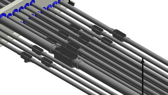 Given the site geometry and the location and the electrical specification of sources and loads in the model, the system generates a number of coordinated, code-compliant raceway designs, “We read into the system all of the electrical information about the plant or the building, with equipment locations indicated in the 3D model, and then we do everything else. The system determines the gauge of the wire based on the load, voltage drop and derating calculations, determines the correct grouping of wires into raceway based on a number of considerations, and fully routes and details the solution. 4