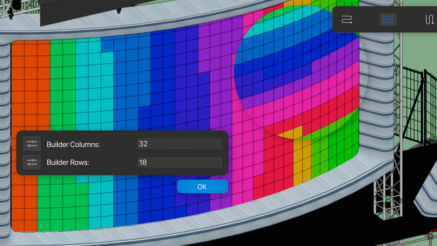 There’s a new LED Wall creation tool, which can create walls of virtually any shape, including flat, curved and three dimensional forms. The tool supports the ability to calculate technical specifications, such as power and data requirements, overall size and weight, and pixel resolution.