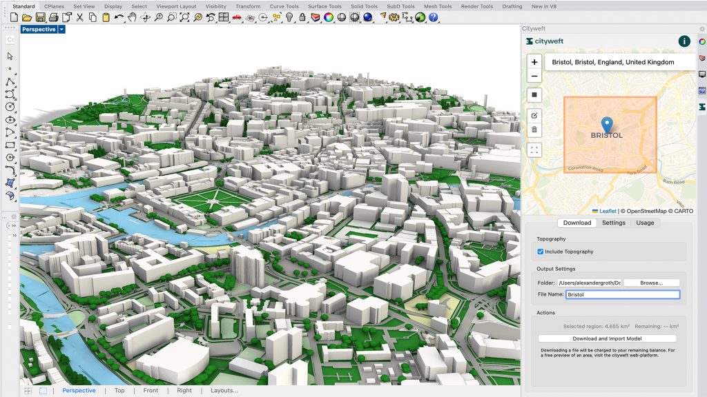 Models can be brought into Rhino, via the Cityweft platform, with support for Revit and SketchUp coming soon