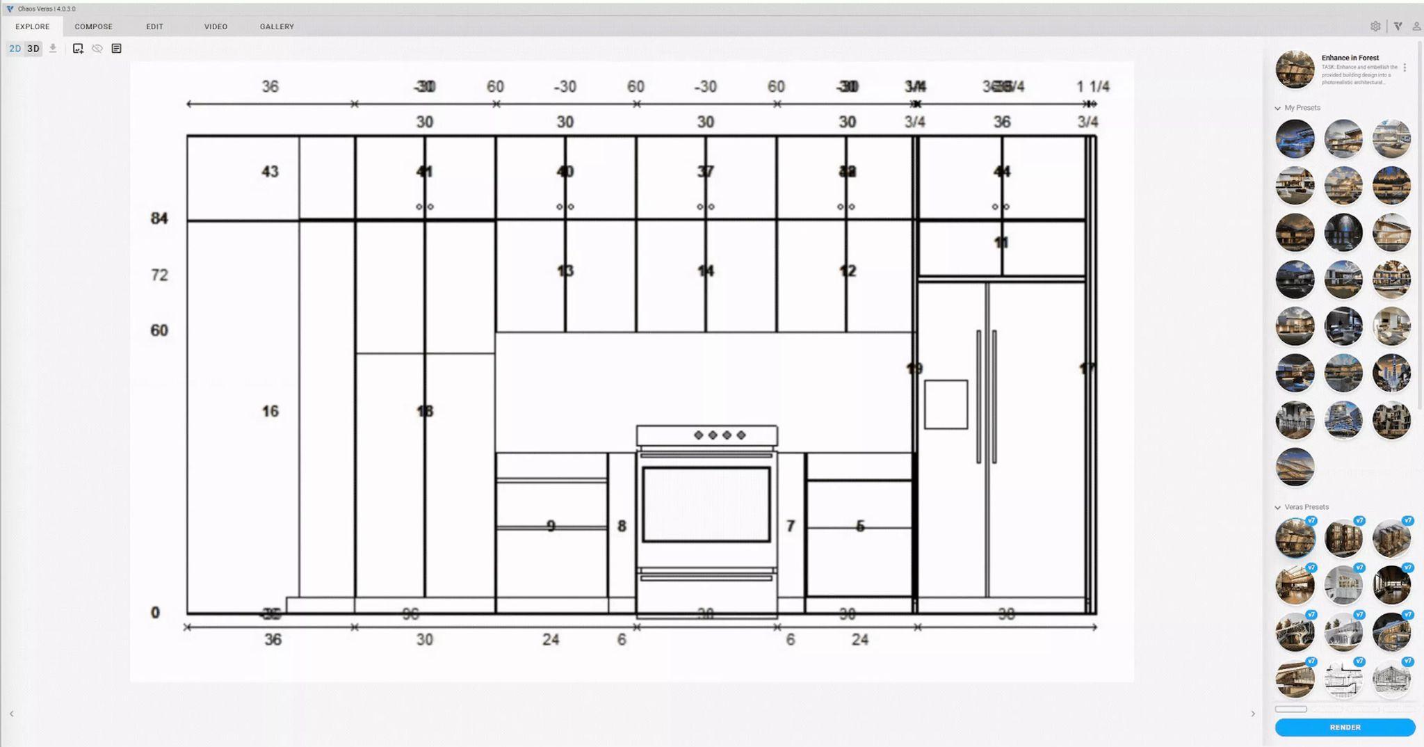 When reimagining a space, it can be difficult to grasp how the finished project will truly look and feel, as simple sketches and technical plans rarely convey scale, depth, or atmosphere. We sat down with Chaos’ Bill Allen to explore how, with the help of Veras, he brought his own kitchen renovation to life, transforming a flat 2D cabinet elevation into a detailed, animated design visualization.