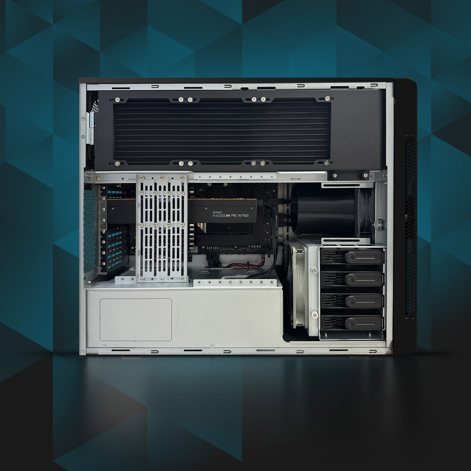 For graphics, there’s a single Radeon Pro W7900, AMD’s brand-new high-end workstation GPU with a whopping 48 GB of memory.