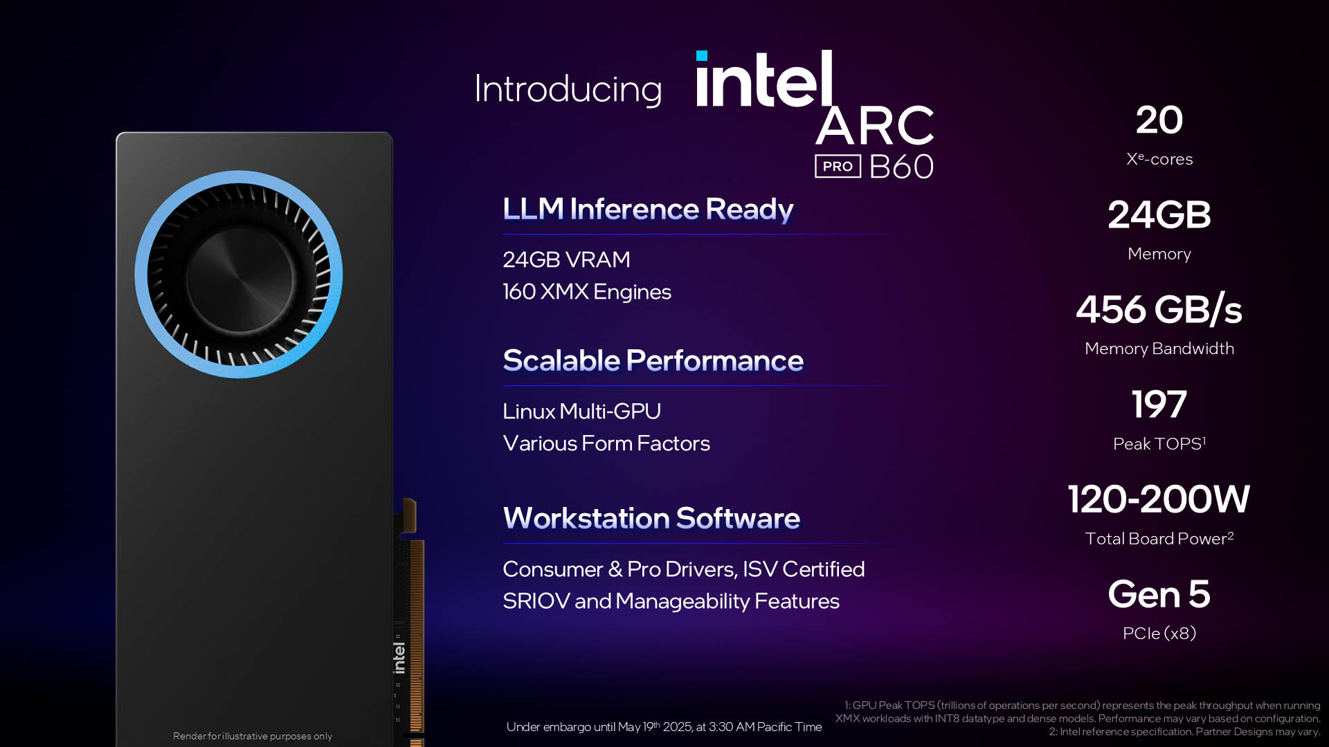 Intel also announced Project Battlematrix, an internal code name for new inference workstation platform that provides up to eight Intel Arc Pro GPUs in a system, allowing up to 192 GB of VRAM. According to Intel, this allows it to run models that are 70B+ parameters and above.