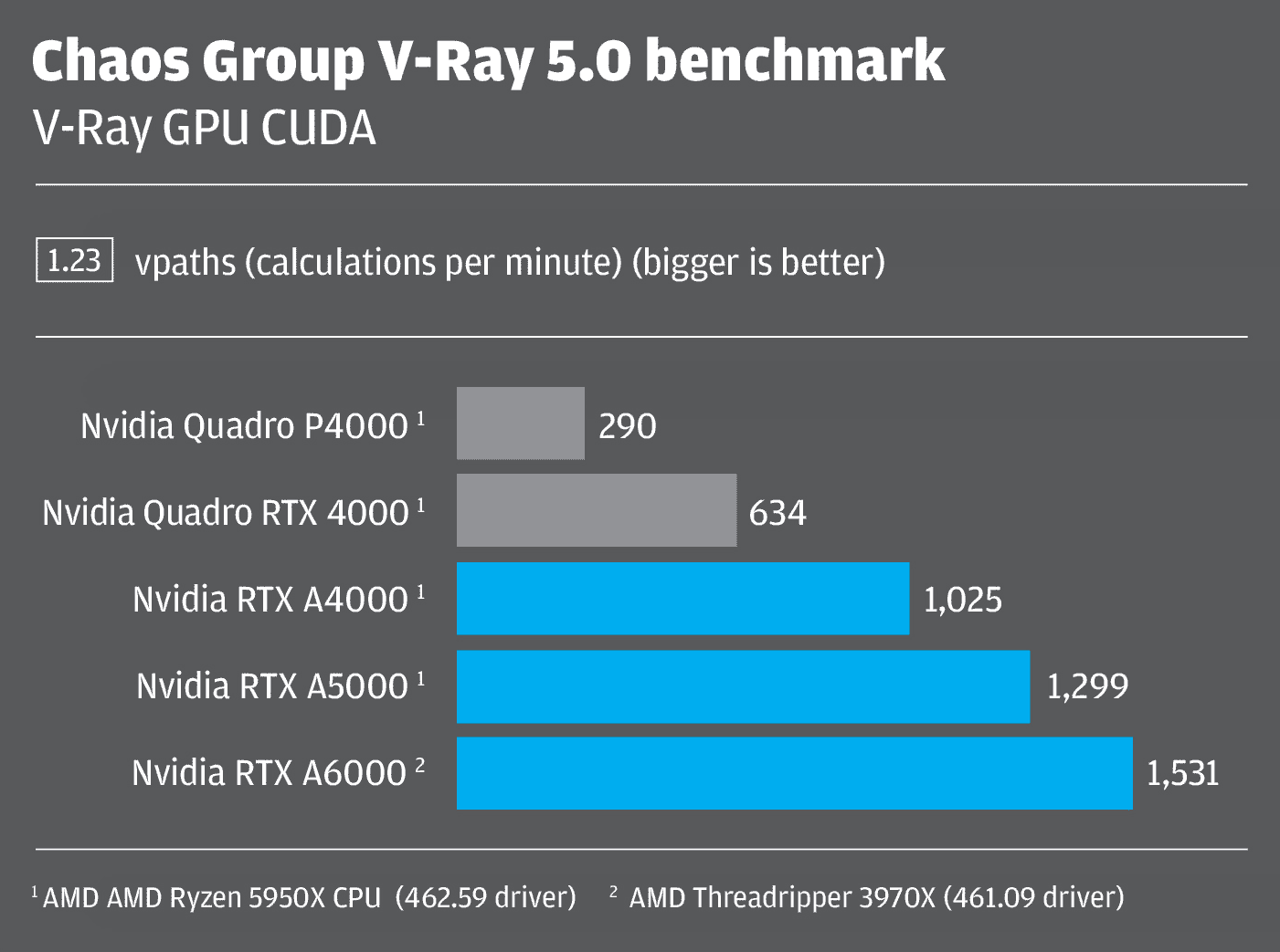 V-Ray is one of the most popular physically based rendering tools, especially in architectural visualisation. We put the new cards through their paces using the freely downloadable V-Ray 5 benchmark, which has dedicated tests for Nvidia CUDA GPUs, Nvidia RTX GPUs, as well as CPUs.